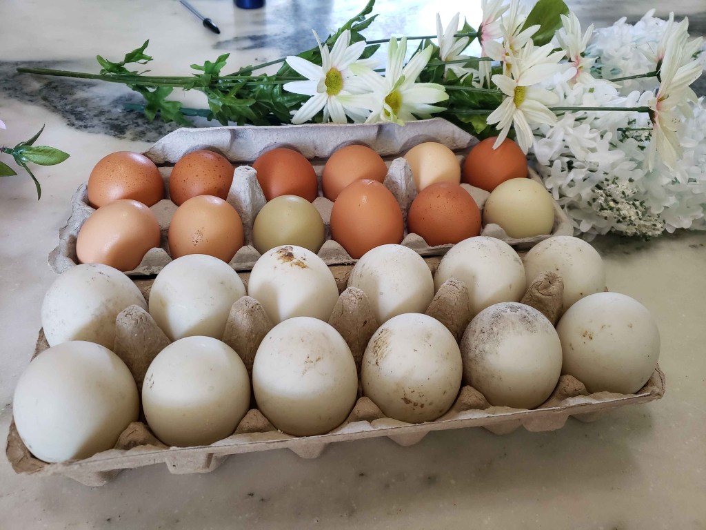 (Eggs are unwashed and unrefrigerated unless specified.)